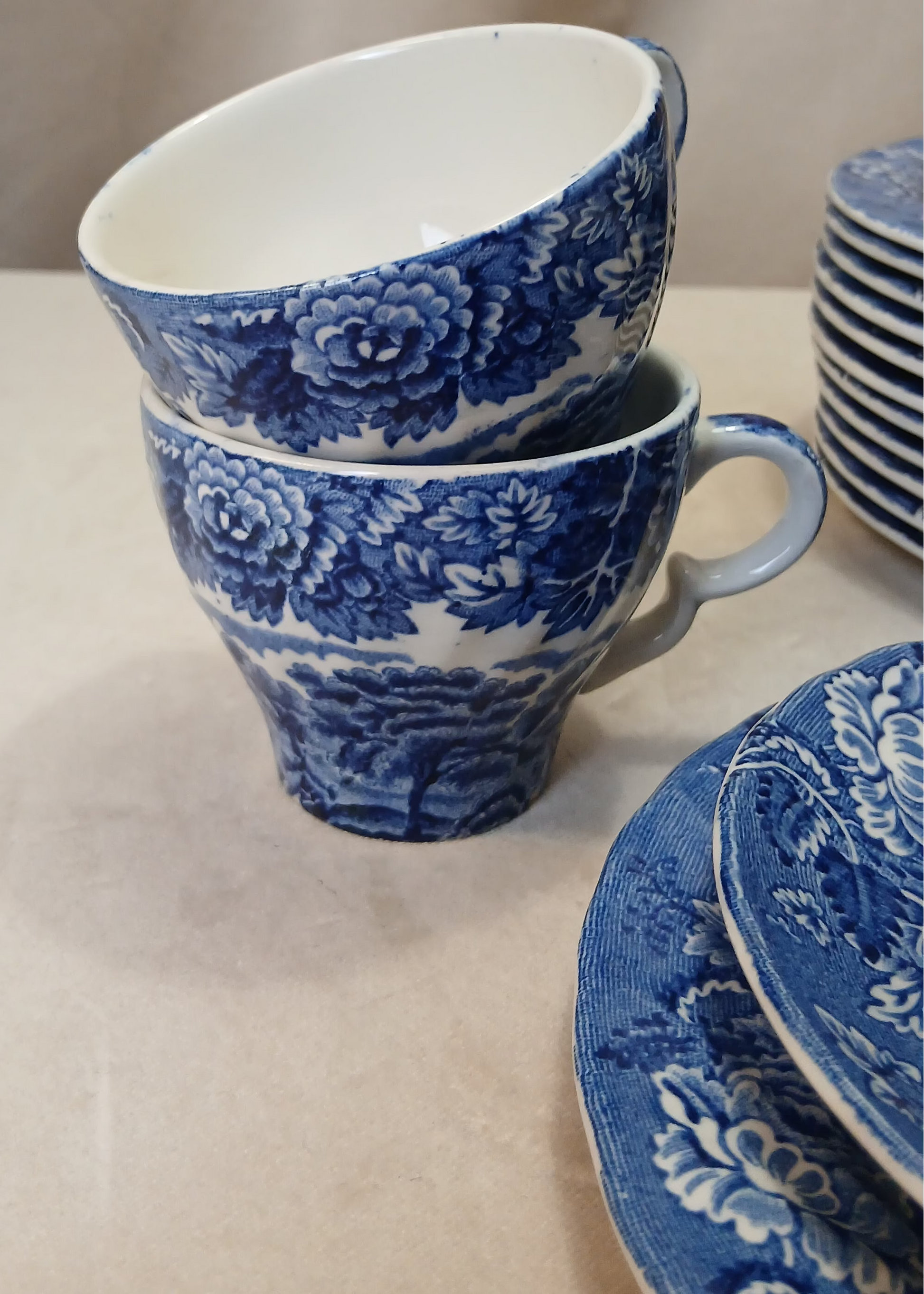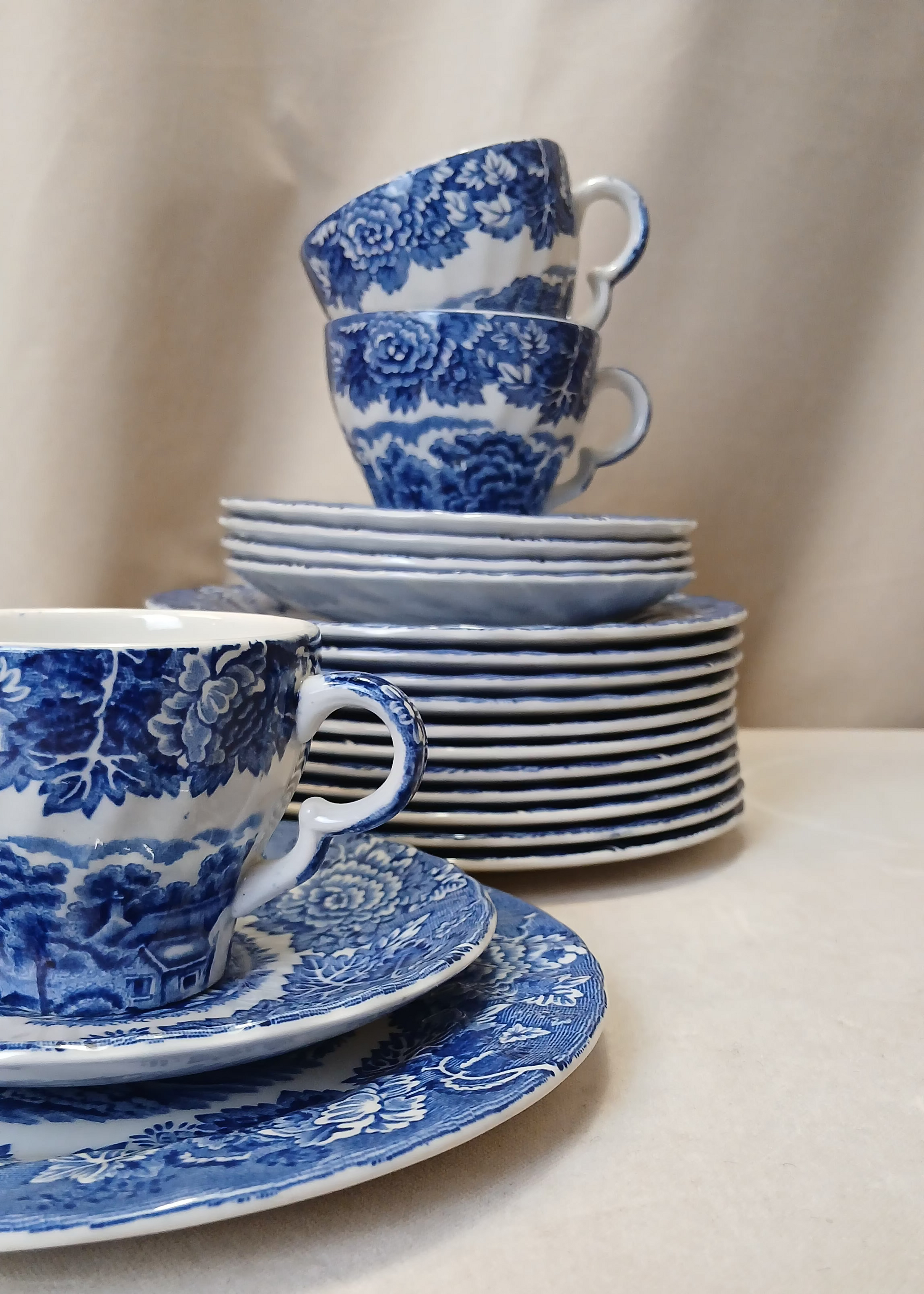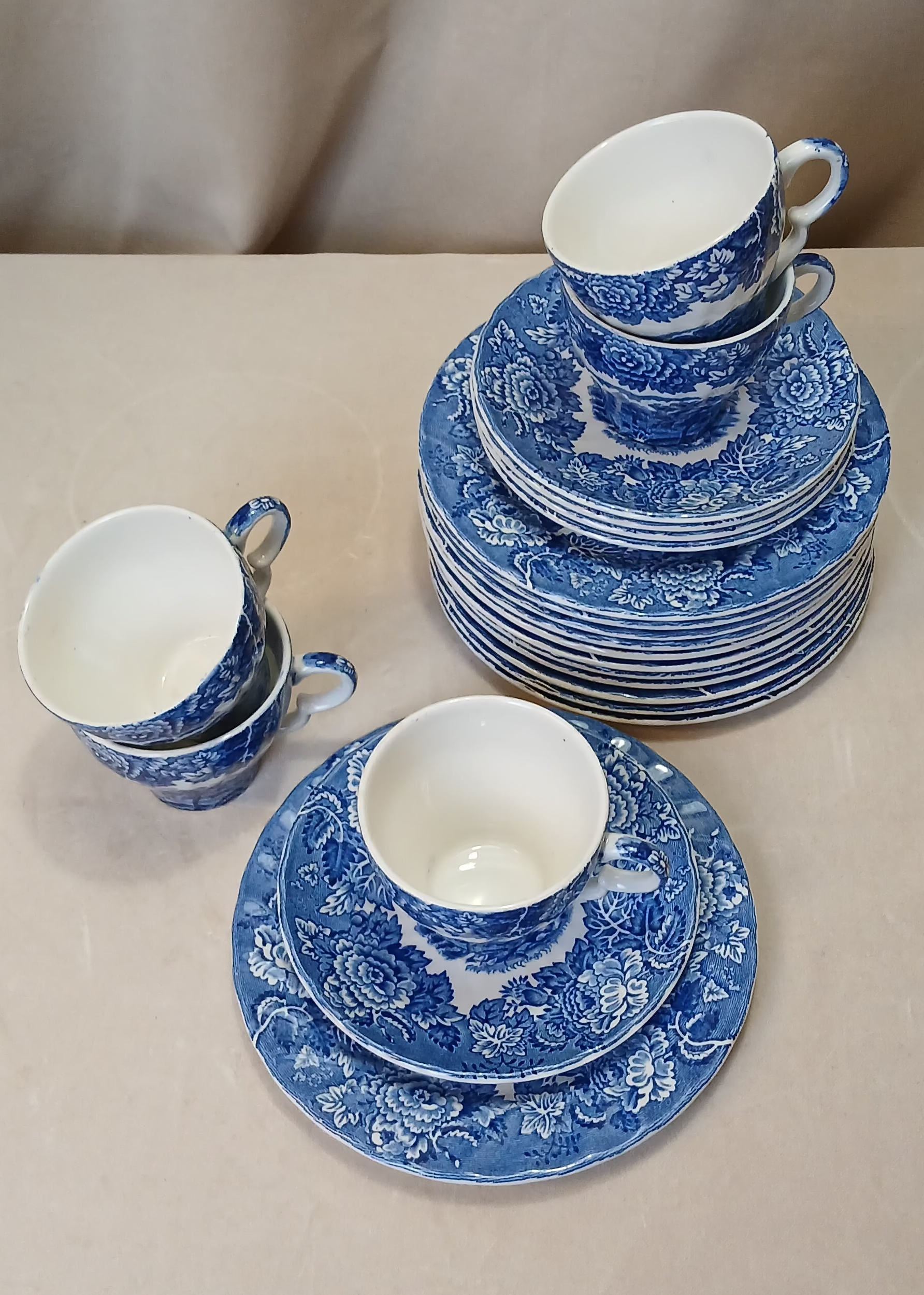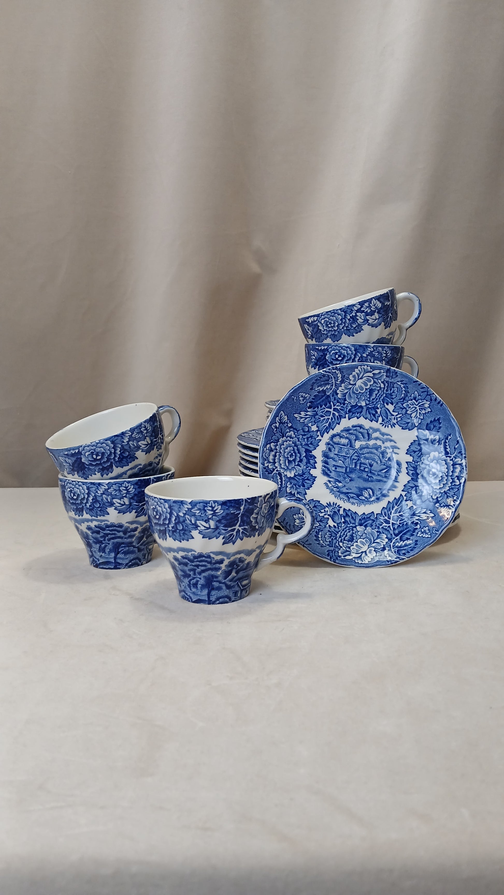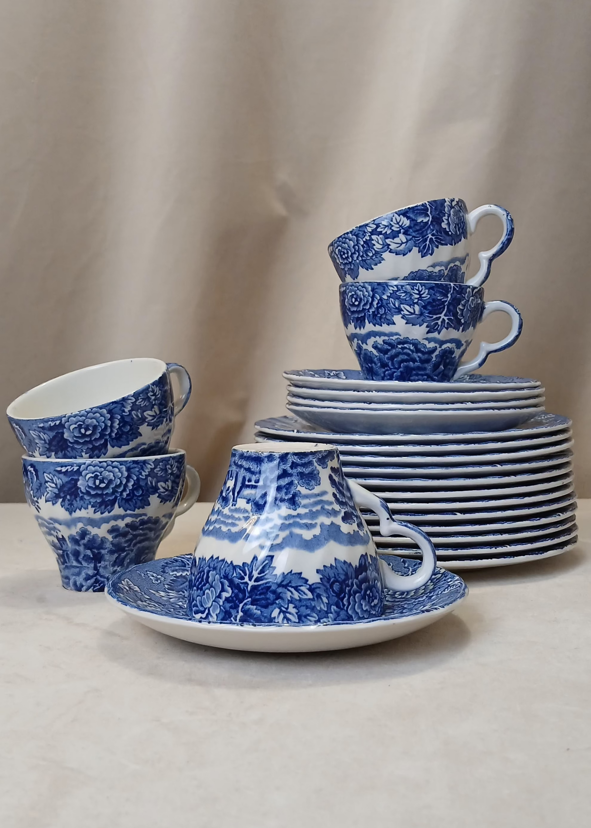 Blått porselens servise sett til 5stk , med en ekstra kopp.