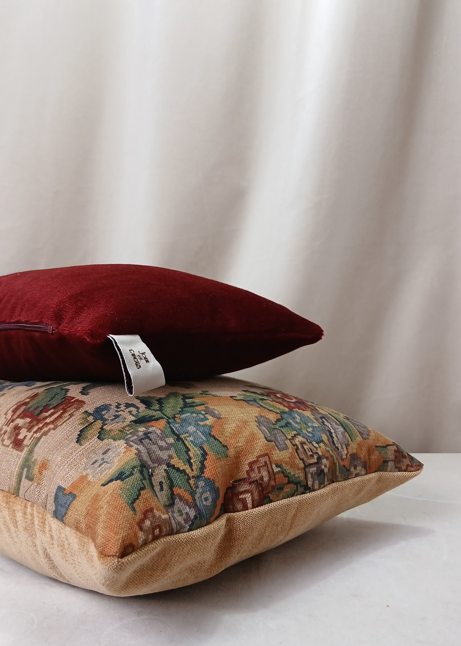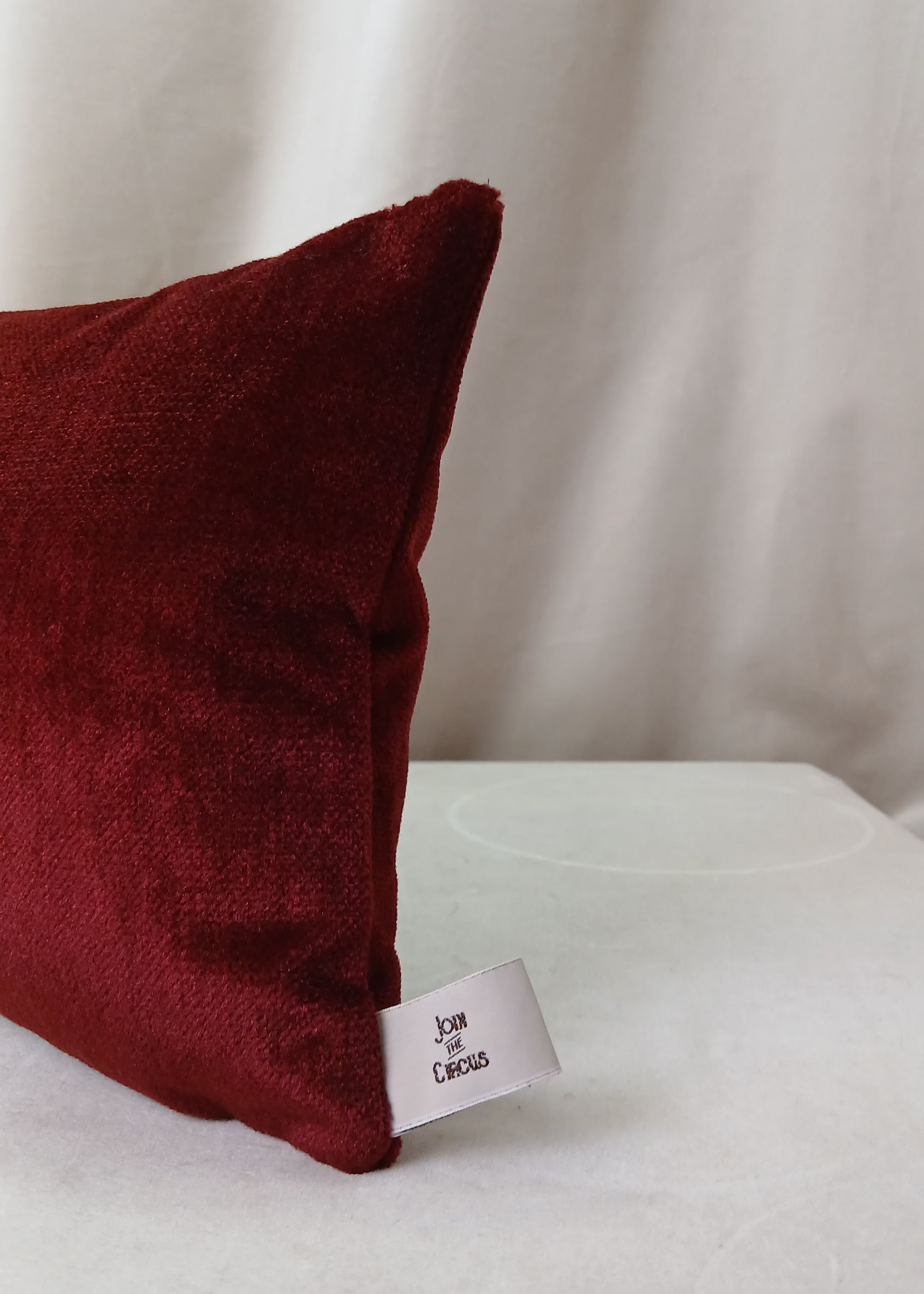Pute sydd i vintage velour møbelstoff i nydelig burgunder farge.