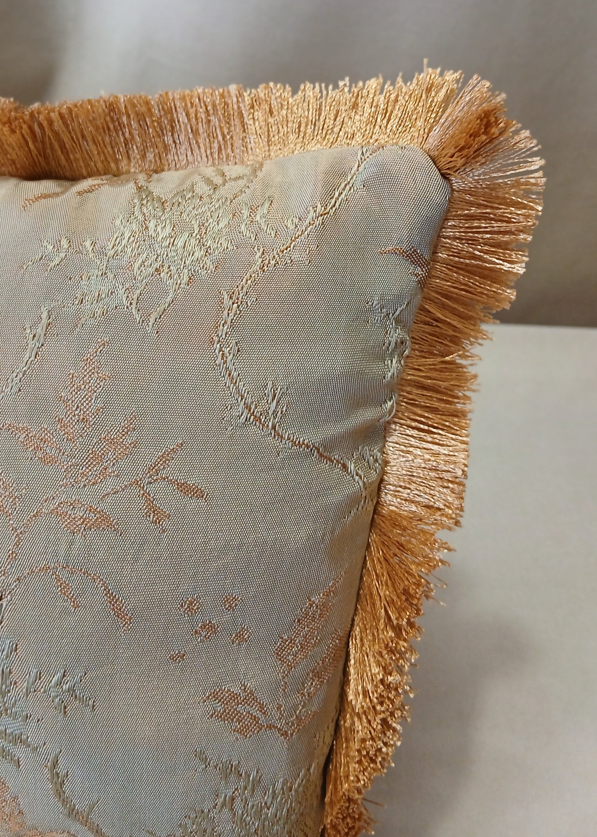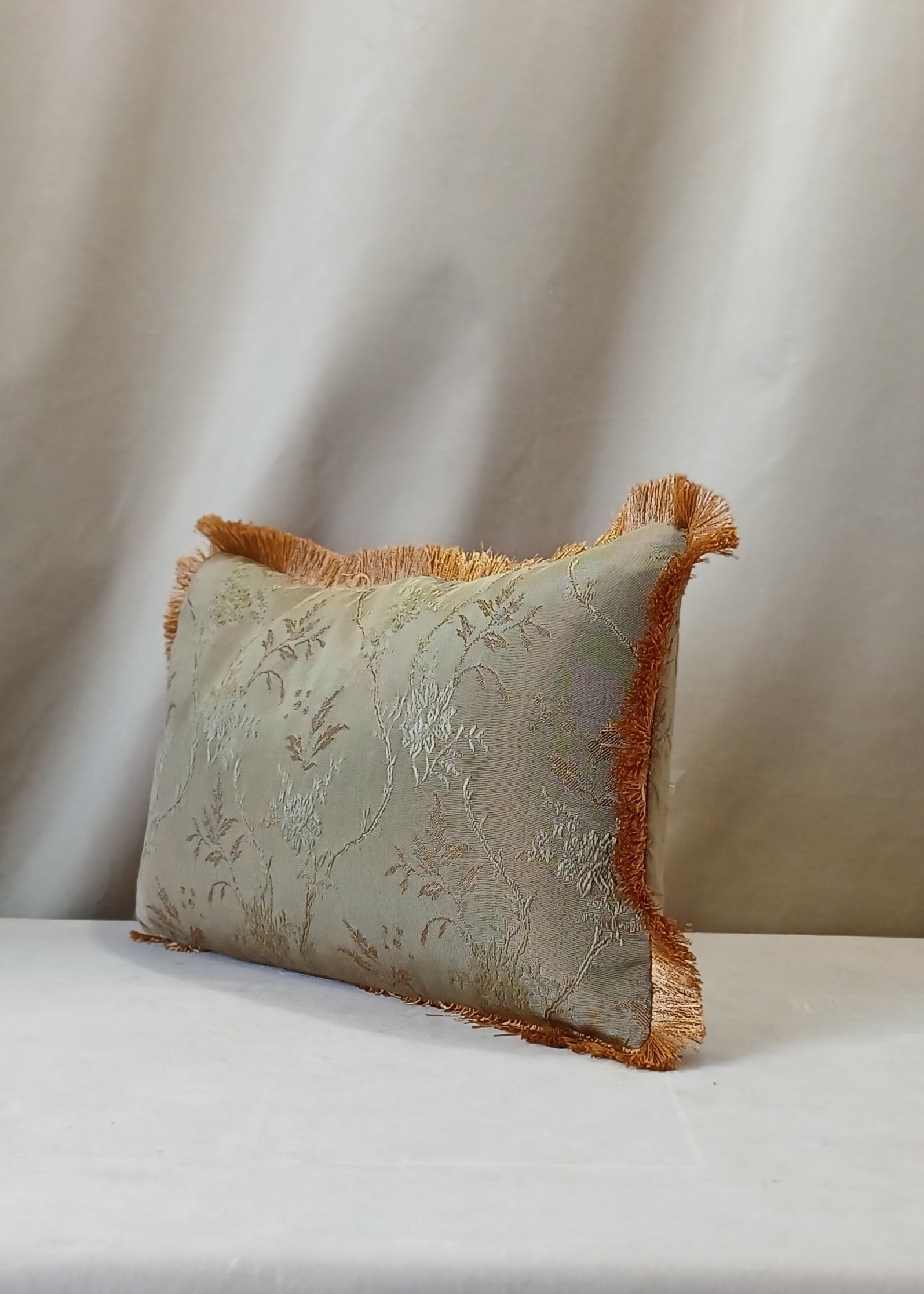 Grøn Liten Pute med frynser, sydd i Circuset av Direktøren sjølv.