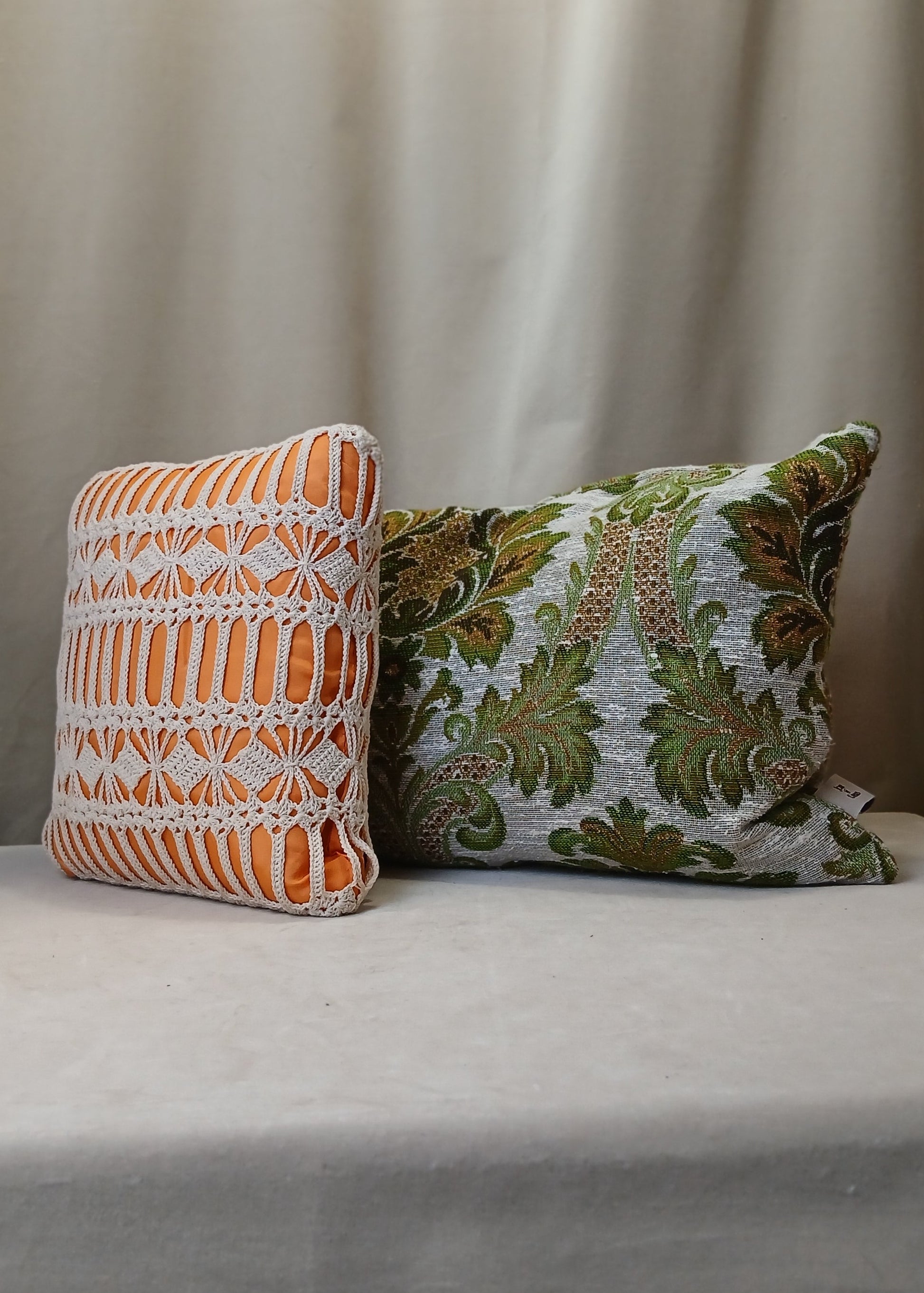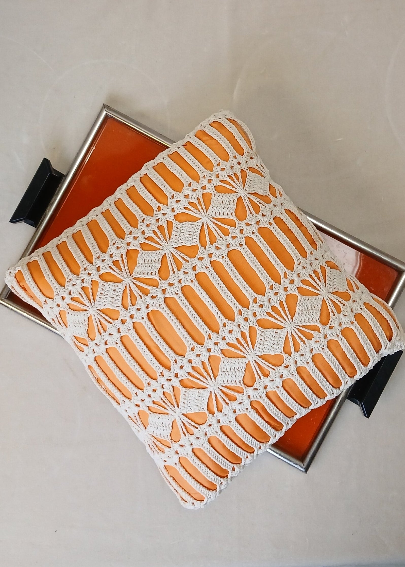 Vintage Orange liten hekle pute.