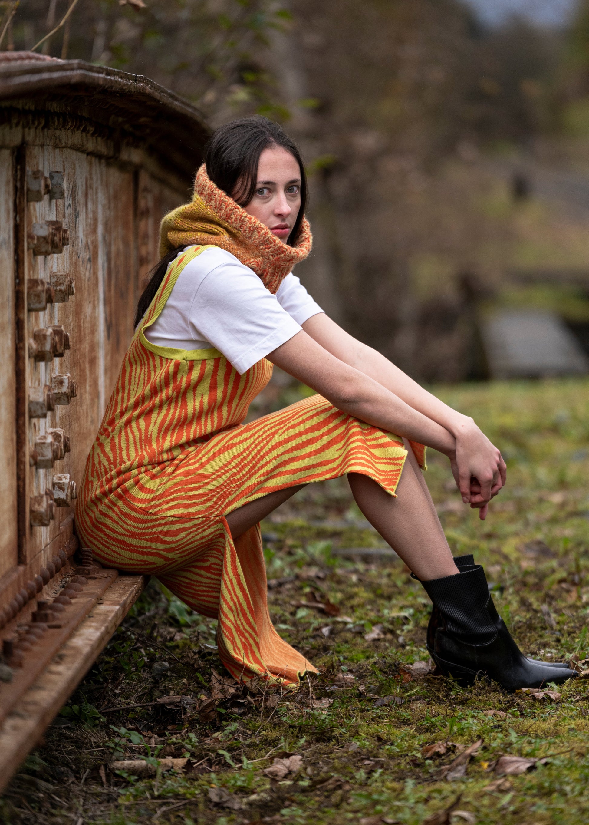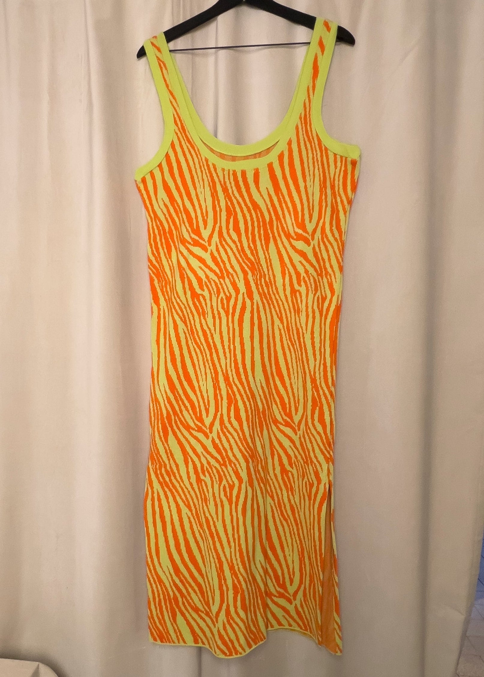 Str 42/44 , men modellen her er str 36/38, så den funker fint oversized også!