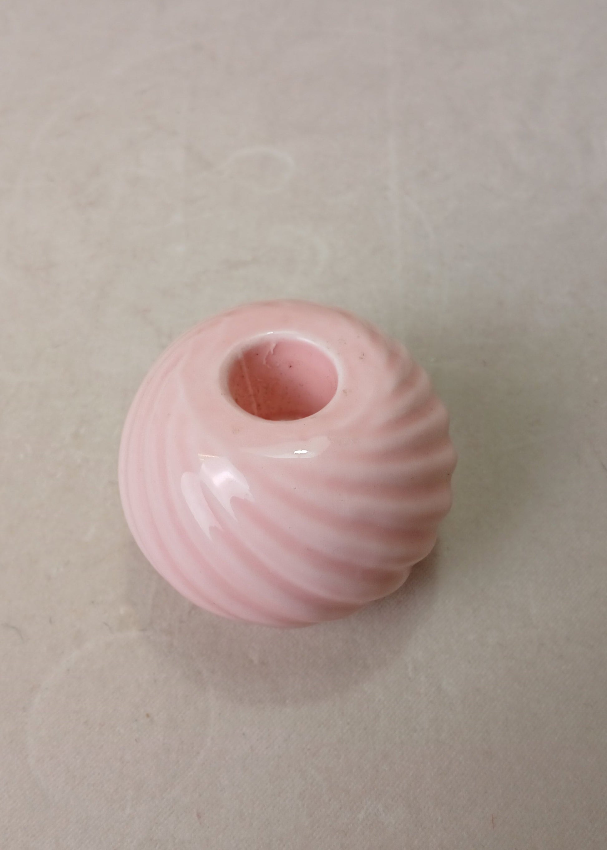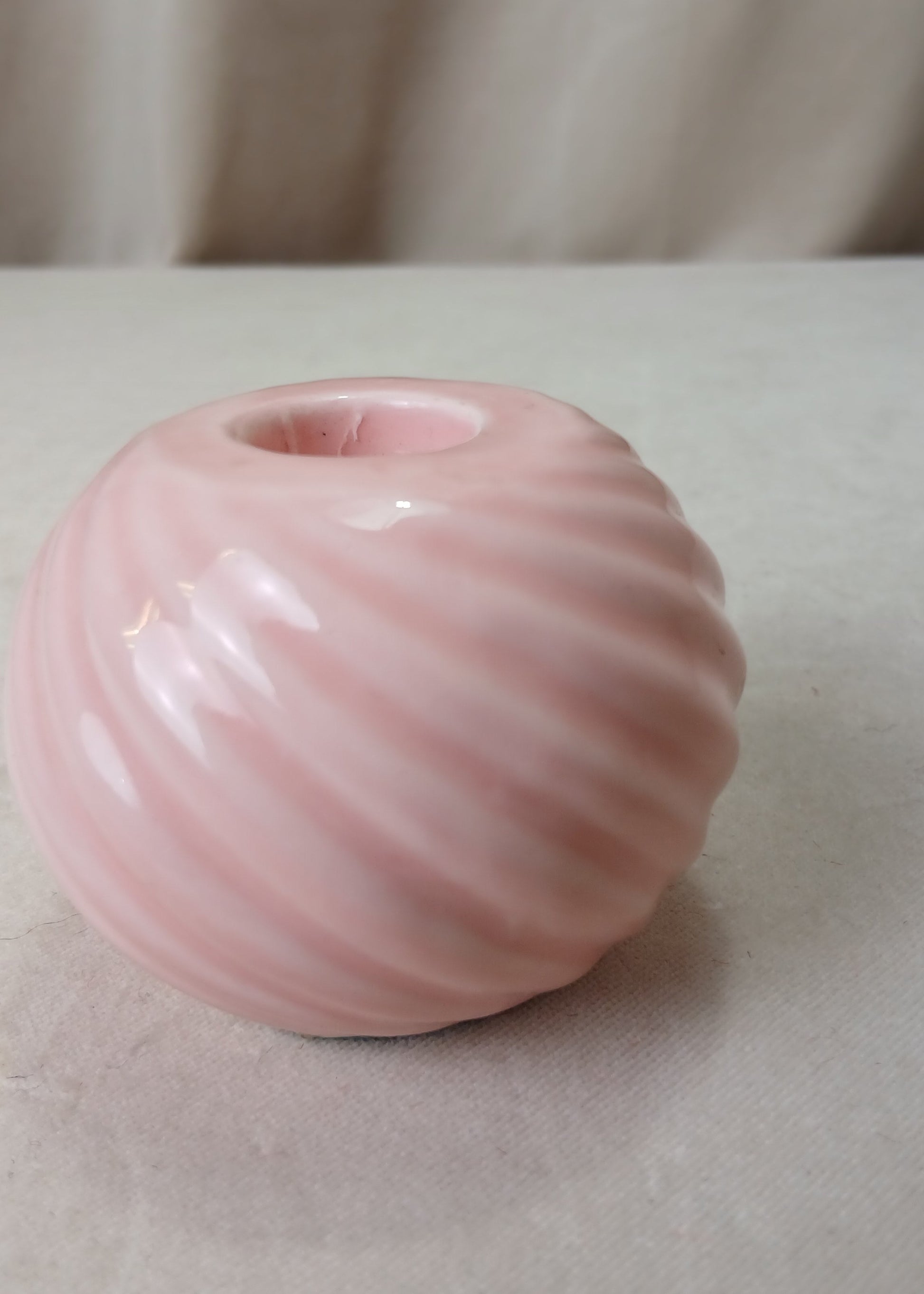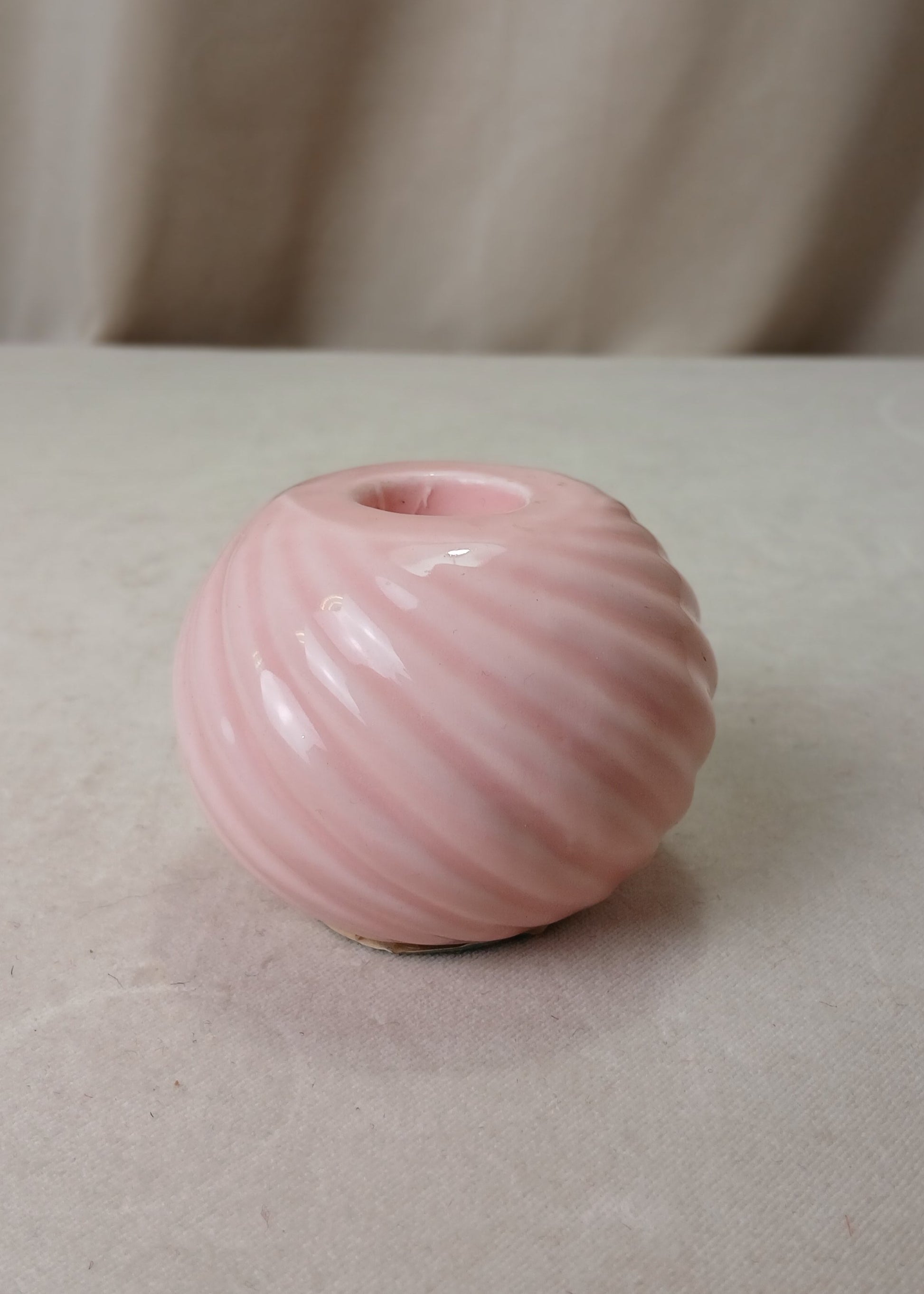 Rosa lysestake i porselen fra 80-tallet.