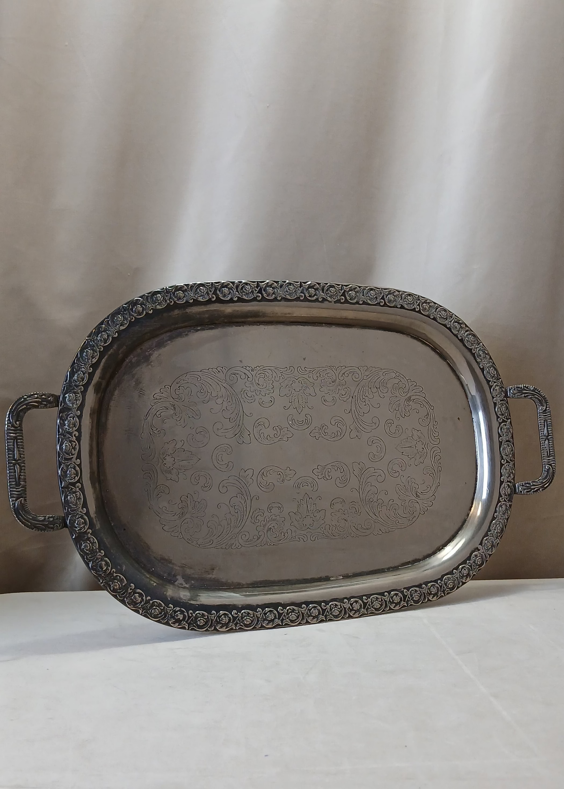 Serveringsbrett i Nysølv, ukjent opphav og alder.