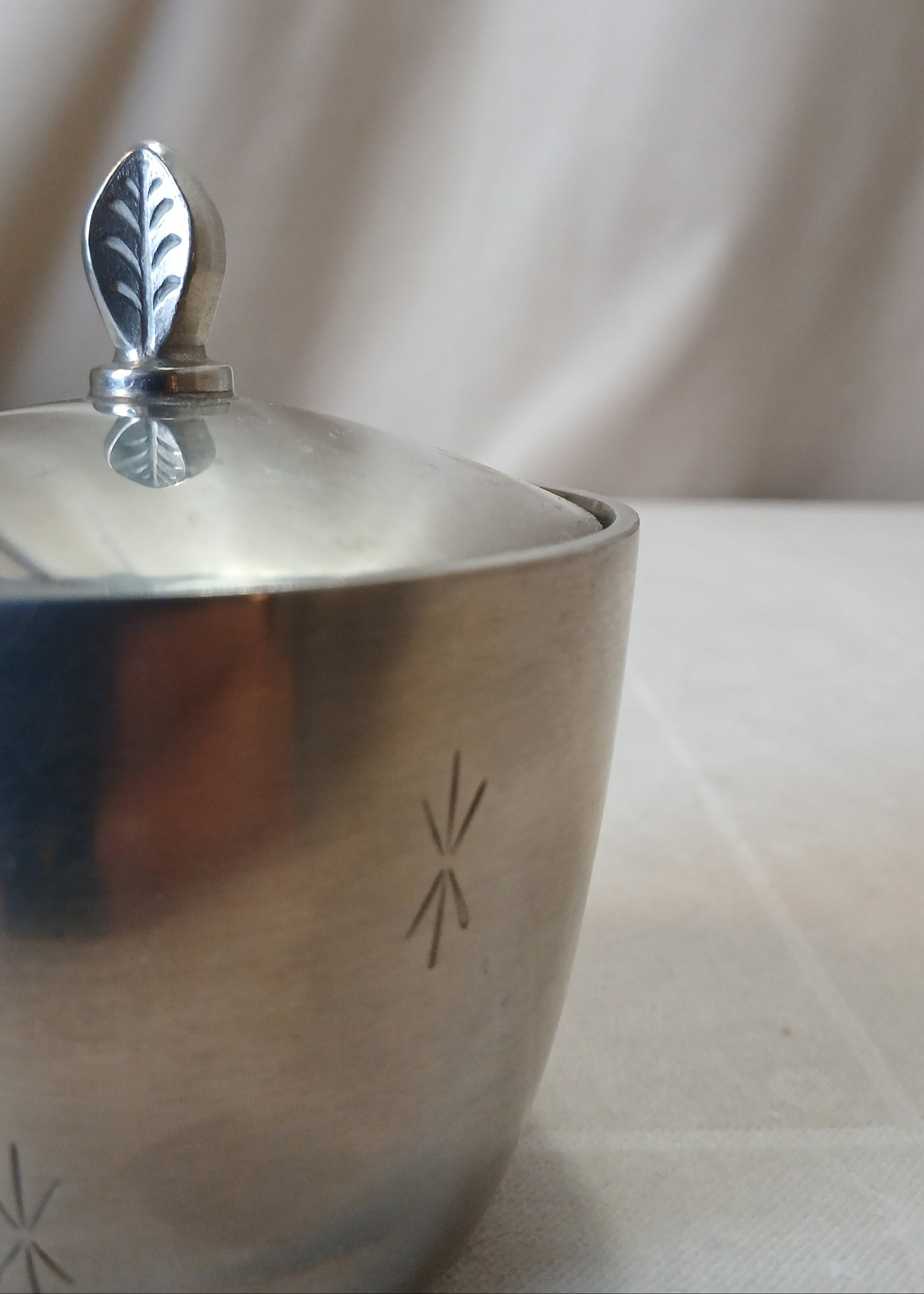Norsk produsert sukker og fløte sett i Tinn fra 50-tallet.